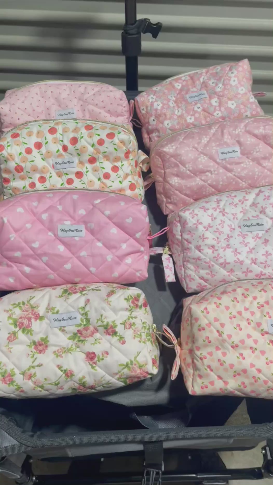 A beautifully quilted makeup bag made with delicate floral cotton and a soft dobby pink or white lining depending on the fabric stock. It’s the perfect size for cosmetics, toiletries, or even your sewing essentials. Carefully handcrafted in New Zealand.